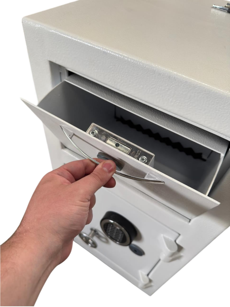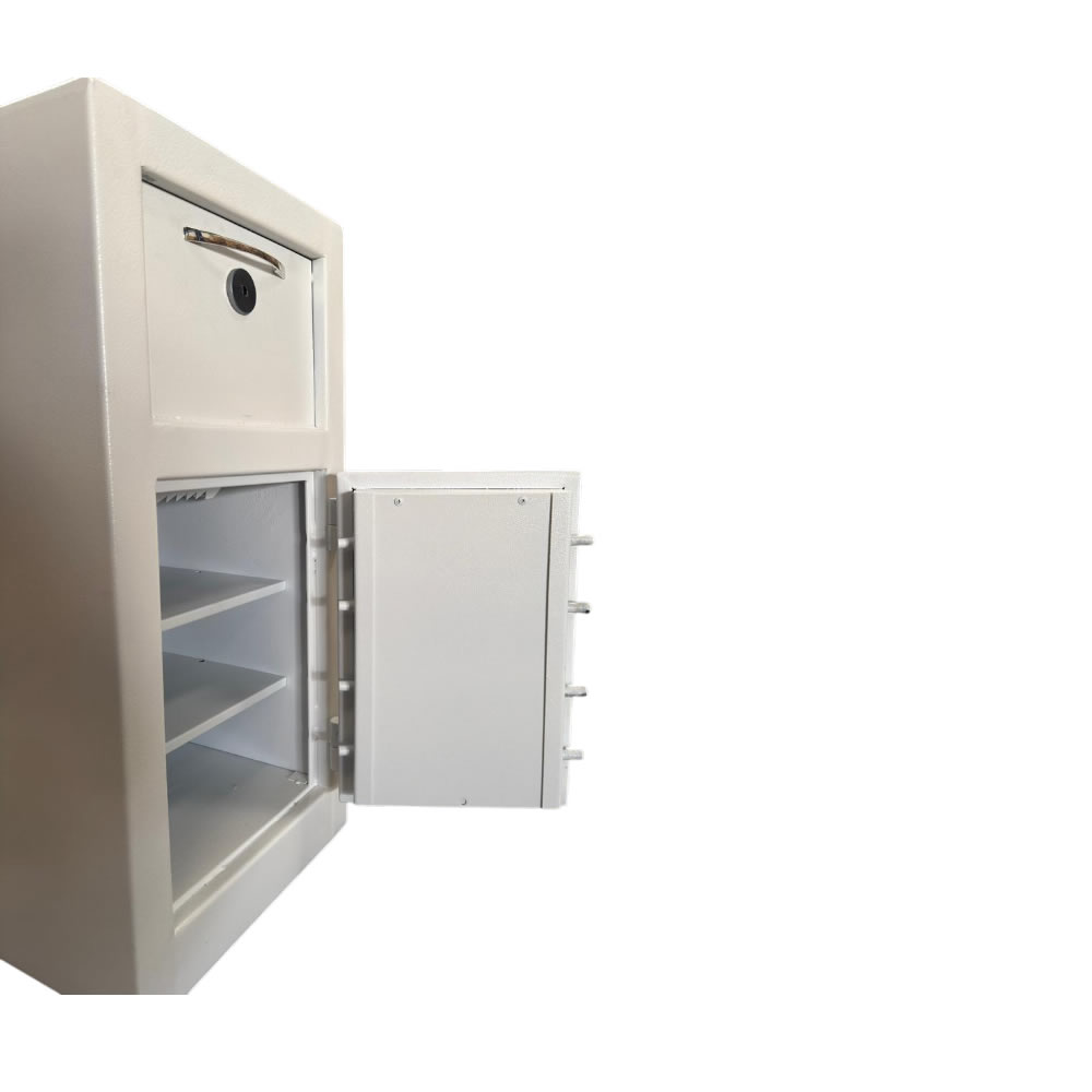 Com design moderno e acabamento em pó na cor branca, ele se adapta facilmente a qualquer ambiente, seja em casa, escritórios ou em estabelecimentos comerciais. Sua fechadura é personalizada de acordo com a solicitação que o cliente deseja, podendo ser fechadura mecânica de segredo, digital ou biométrica, projetado para garantir alta segurança e confiabilidade, cofre composto por dois mecanismos de abertura chave e fechadura de acordo com a solicitação do cliente.