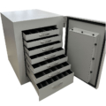 • Capacidade aproximadamente de 308 fitas, com possibilidade de aumentar o número com a troca das gavetas por prateleiras.