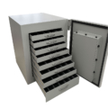 • Capacidade aproximadamente de 720 fitas, com possibilidade de aumentar o número com a troca das gavetas por prateleiras.