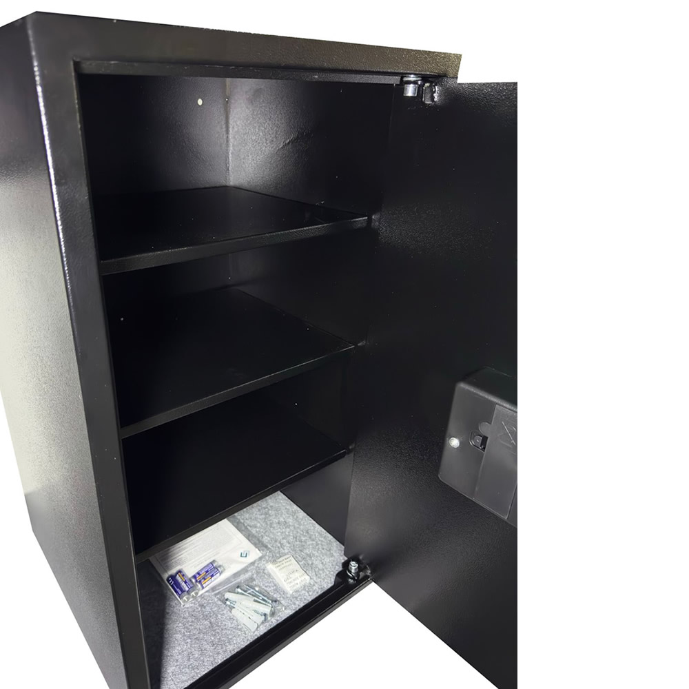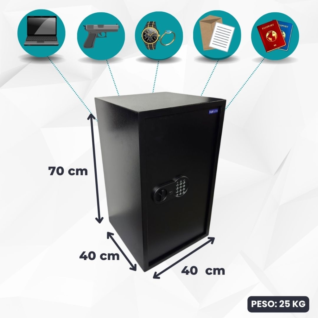 Com design sofisticado e acabamento em pó na cor preta, ele se adapta facilmente a qualquer ambiente, seja em casa, no escritório ou em estabelecimentos comerciais. Seu teclado eletrônico com senha programável de 3 a 8 dígitos garante acesso rápido e seguro, enquanto a chave mecânica de emergência oferece tranquilidade em casos de esquecimento da senha ou pilhas descarregadas.