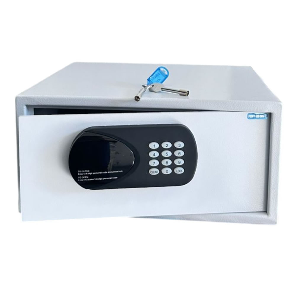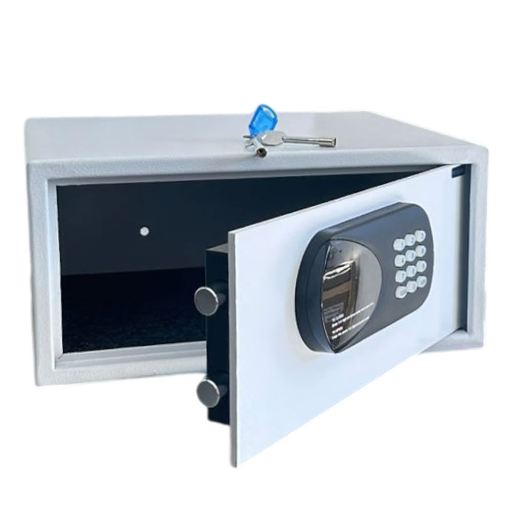 Com design sofisticado e acabamento em pó na cor branco, ele se adapta facilmente a qualquer ambiente, seja em casa, no escritório ou em estabelecimentos comerciais. Seu teclado eletrônico com senha programável de 4 a 6 dígitos garante acesso rápido e seguro, enquanto a chave mecânica de emergência oferece tranquilidade em casos de esquecimento da senha ou pilhas descarregadas.