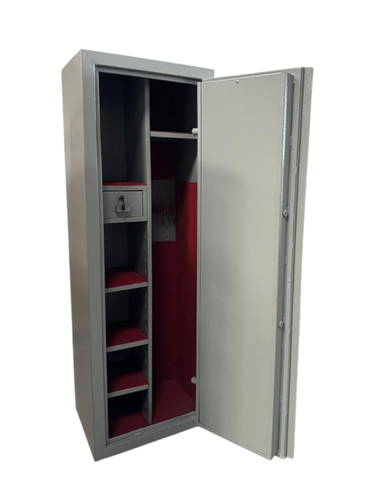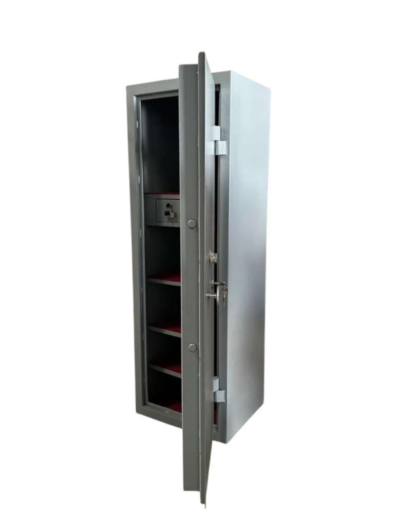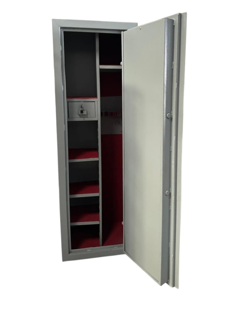 Nosso Cofre Armário Grande – Mod. Para Arma CA 150/50 , combina segurança, praticidade e design moderno em um único produto. Ideal para escritórios, empresas, clubes de tiro e demais setores interligados com a área de segurança podendo ser confeccionado no modelo digital, biométrico ou mecânico, com amplo espaço para proteger documentos, armas de grande e pequeno porte, munição.
