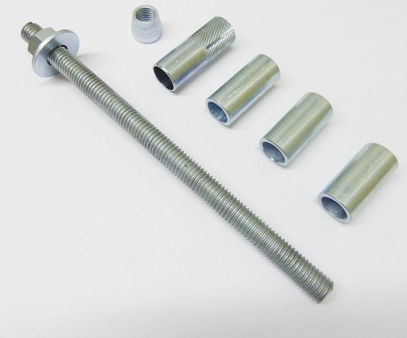 Solução de ancoragem mecânica por expansão controlada por torque, ideal para fixações de alta responsabilidade em concreto. Composto por parafuso expansor, presilha/jaqueta, porca e arruela lisa para montagem completa.