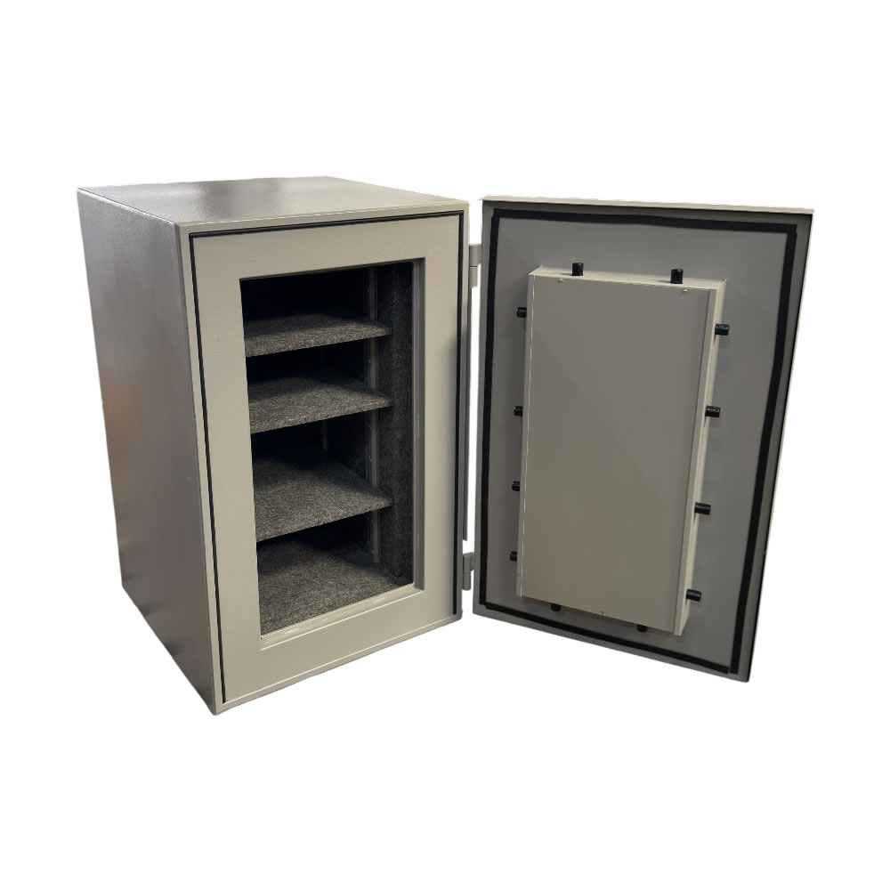 • Dobradiças externas na lateral do cofre, proporcionando uma abertura de 180º.