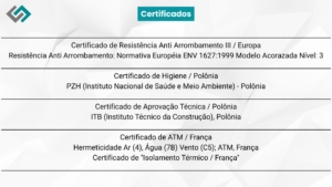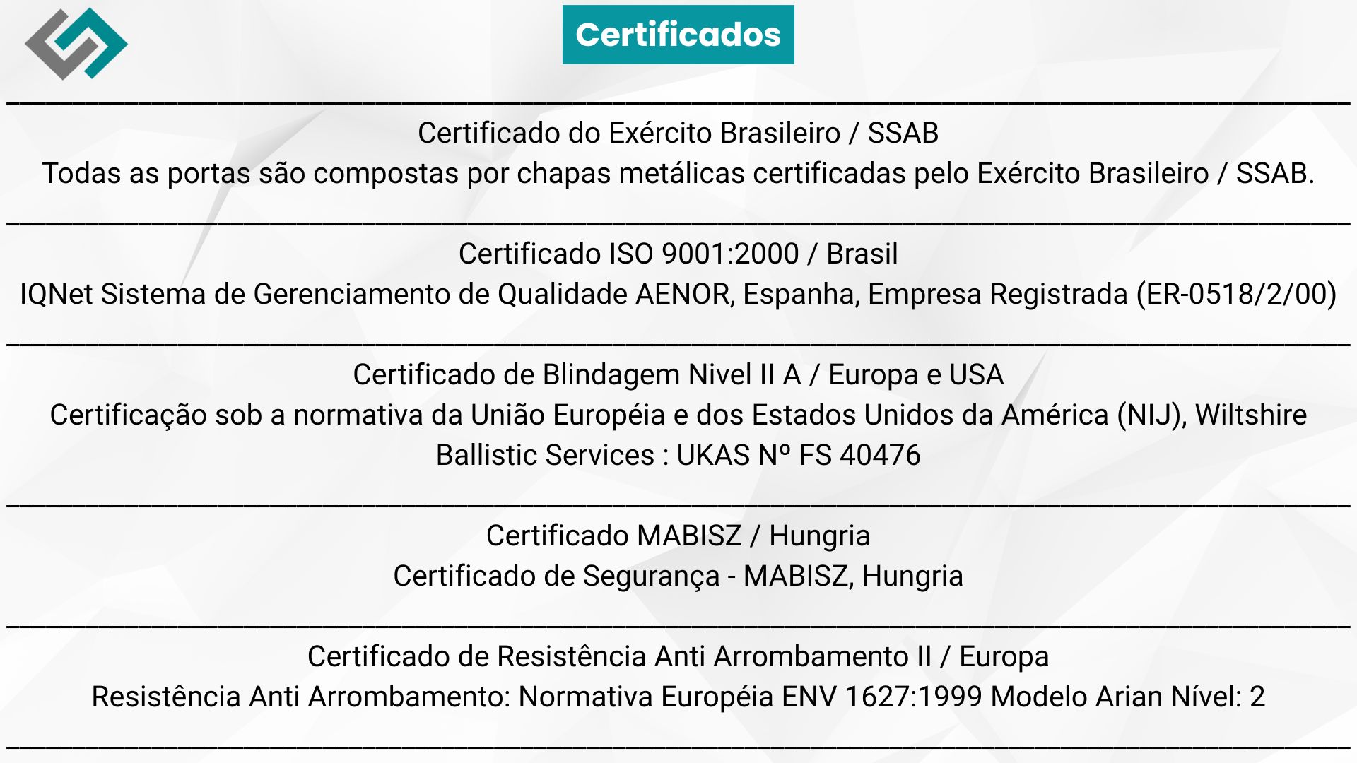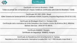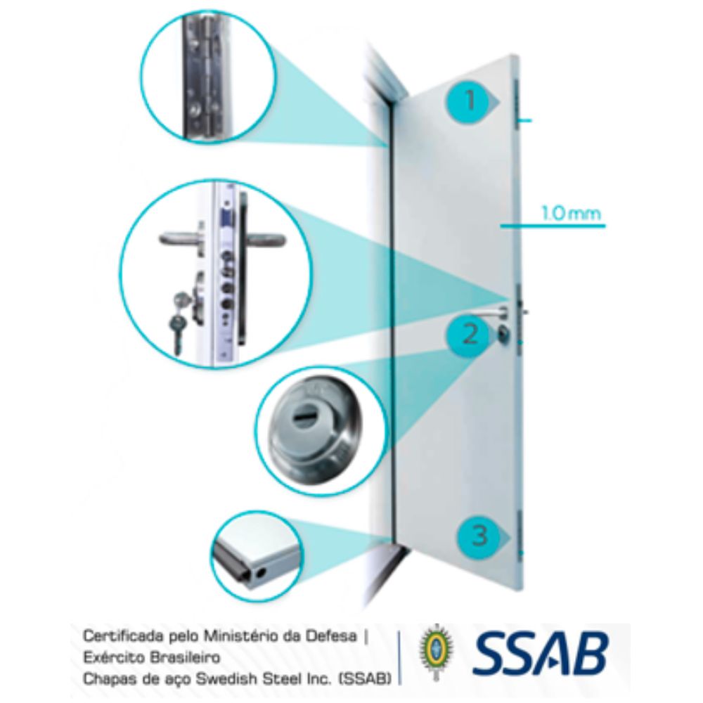 • Folha fabricada em chapa de aço de até 1mm, com acréscimo de painéis de aço de 1mm, lado interno e externo, totalizando 2mm.