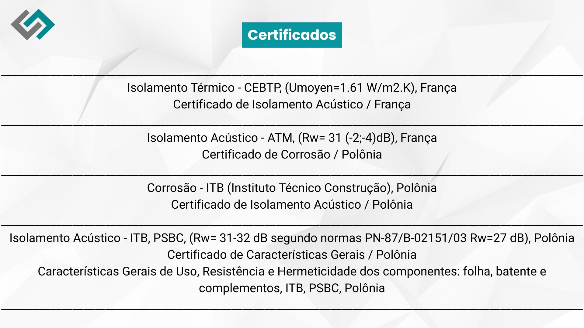 • Batentes: Fabricados em aço galvanizado de 1,5mm de espessura com 100mm de largura;